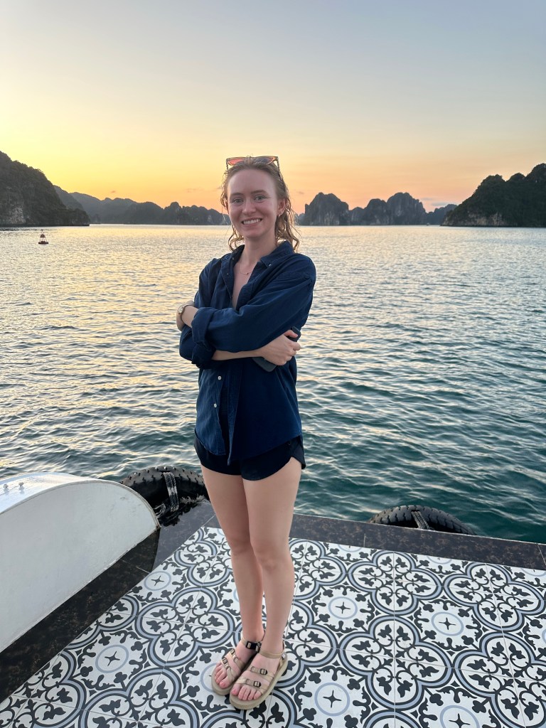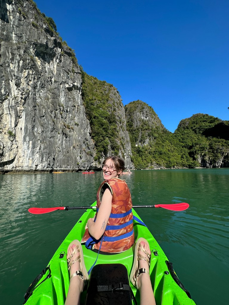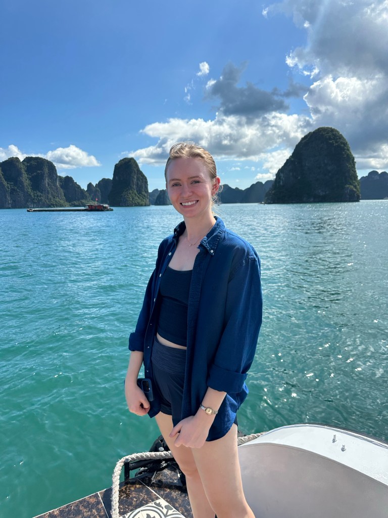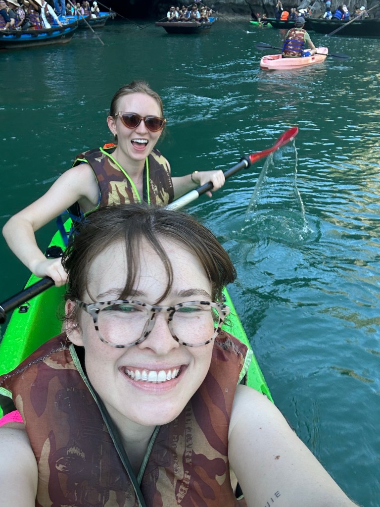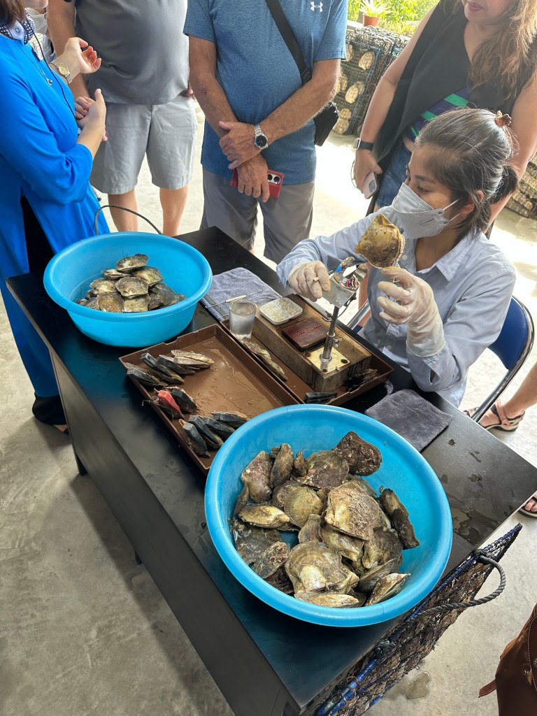 Today we took a guided day trip tour to Ha Long Bay. It was about a 2 hour drive with scenic views. First stop was at an oyster pearl farm. They walked us through how they create the pearls and harvest them. They put a small plastic ball inside the live oyster, and then put them back in the ocean for 2-5 years. The ball supports the sharpe of the pearl and the oyster creates a film around the ball to create the shiny outer layer of the pearl. Only 5% of the pearls turn out perfect, but the rest are used for earrings or turned into dust for moisturizer.