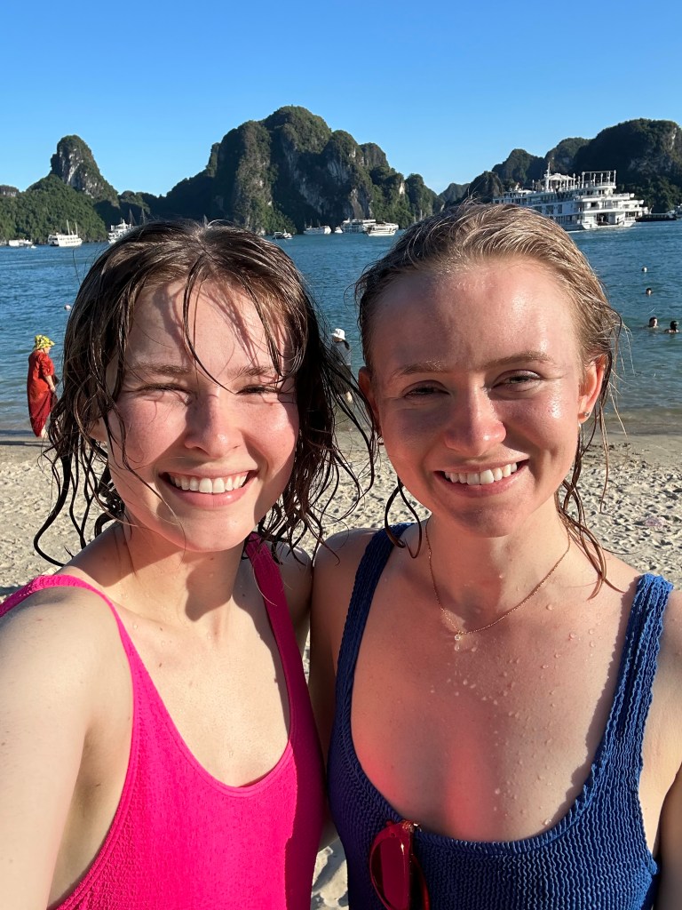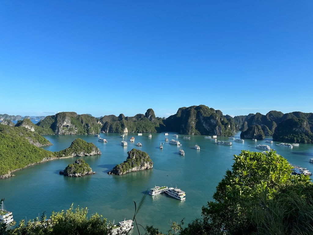 Then a hike for a panoramic view and a swim! we booked it to the top so we could by pass the crowds. There are tons of tours going on, all the same schedule. All the boats in the photo below are your boats! But our guide said this was nothing compared to summer months. We would’ve been waiting an hour just to start the hike.