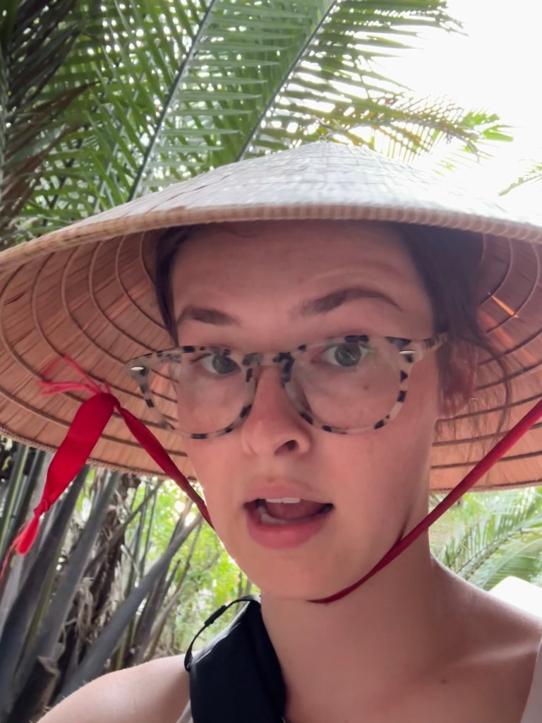 Then took a short ride on a row boat down the river with some locals. Finally got my hands on one of these bamboo hats! ๐ had to take a pic!