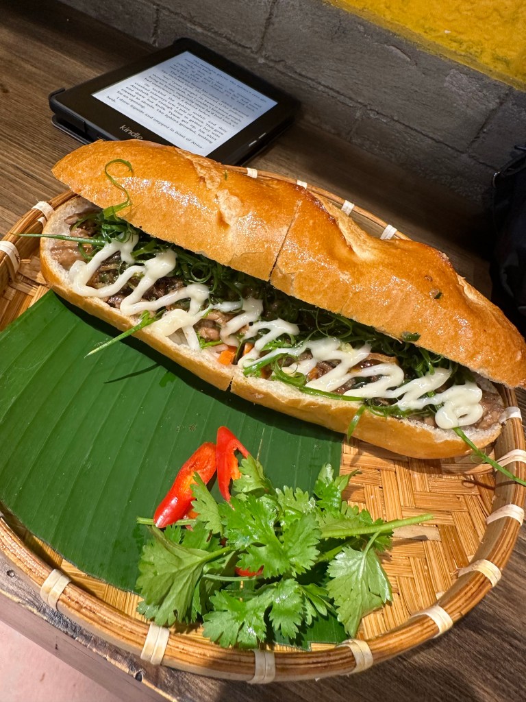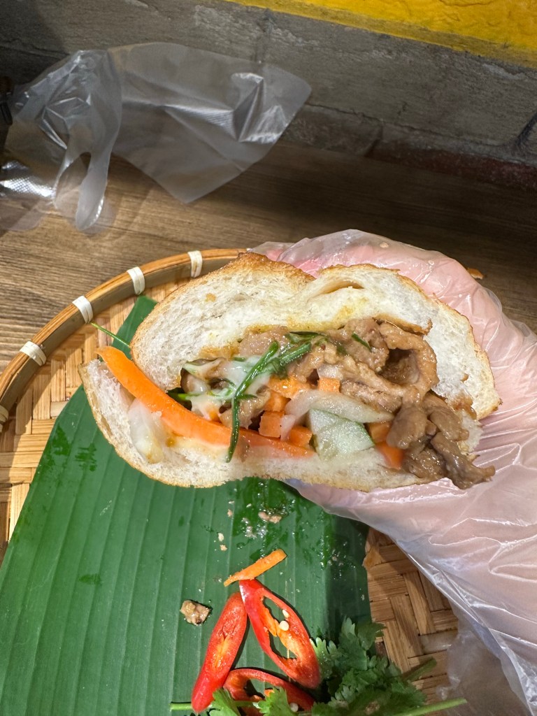 Made it back the city!! I was starving! So grabbed a Bahn mi for dinner! I think this was the 3rd one Iโve had on this trip and this was definitely the best! So so good, accompanied with some passion fruit juice.