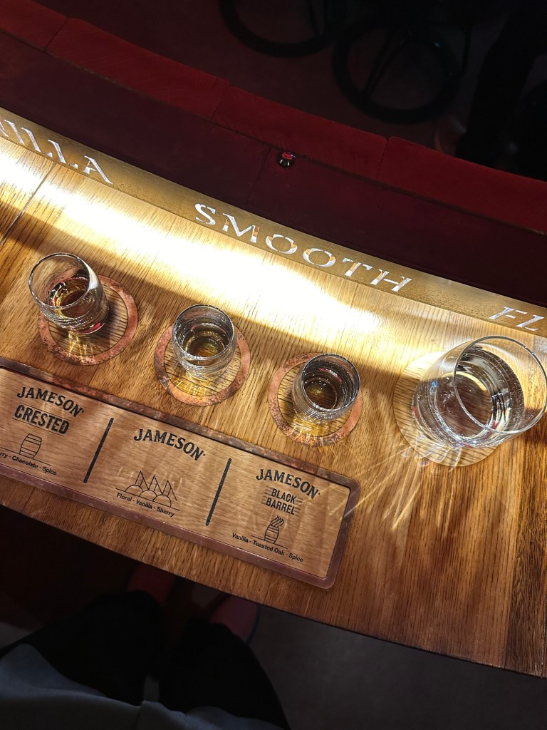 After learning about how Jameson is made and what give it its flavor, we got to taste three different kinds of Jameson. It was really interesting to put what we learned to our taste buds. While I don’t drink all of it 😂 (cuz I’m a baby with whiskey) … I did try them all and could taste the distinct flavors in each. Highly recommend the tour! It was a lot of fun and very interesting!