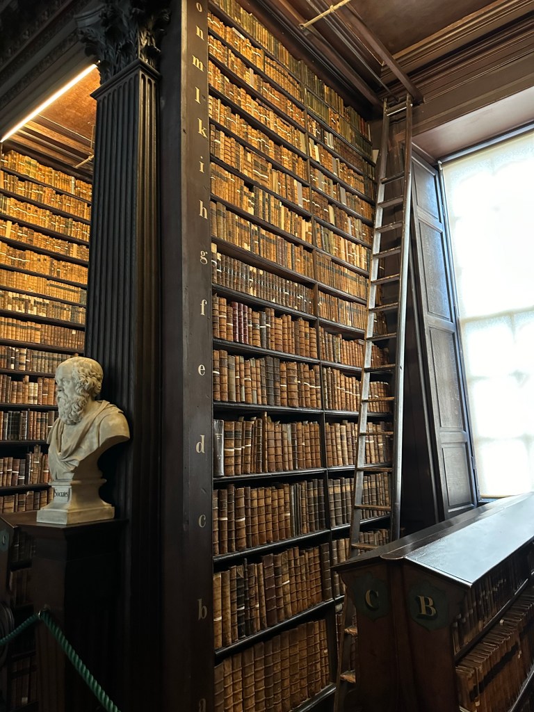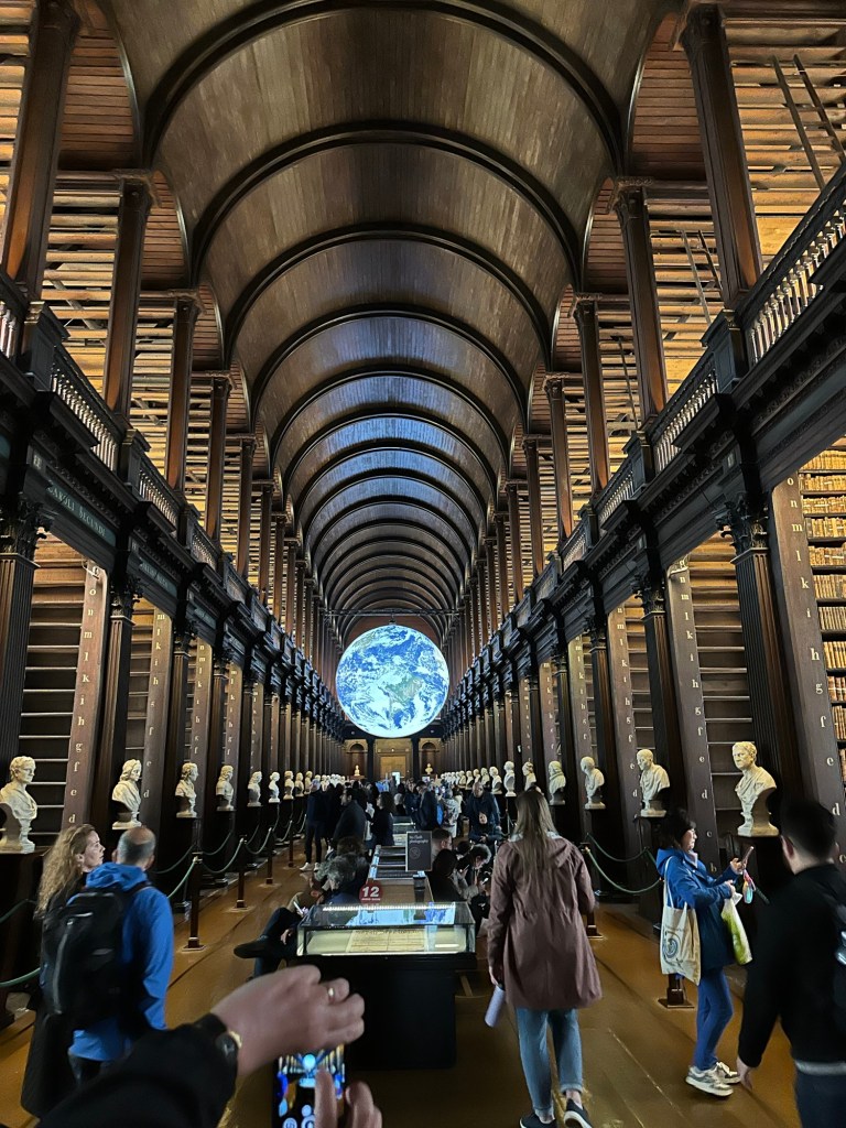 Earlier in the day, we had booked a tour time at Trinity College to see the Book of Kells. This book dates back to 800 AD and is the stories of the four gospels in the new testament. The book was cool and in a glass case and you couldn’t take pictures.