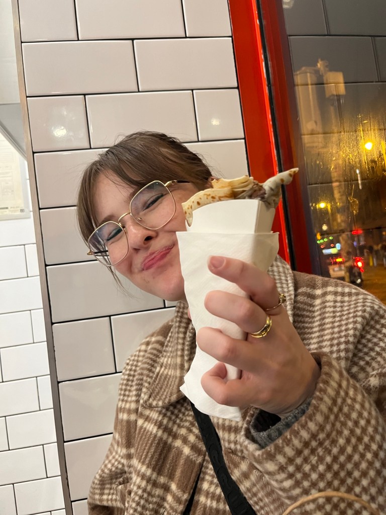 Followed by a little sweet treat 😋, a crepe with Nutella and marshmallow!