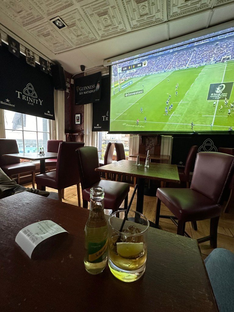 After this, we walked back towards our Airbnb exploring neighborhoods and then grabbing a bite to eat. Little did we know, today was a big day for sports in Ireland. There was a semi final Rugby match for Leinster v Northampton and the whole town was out to watch it!!! While the match didn’t start till 5:30, the pubs were filling up starting at 1.