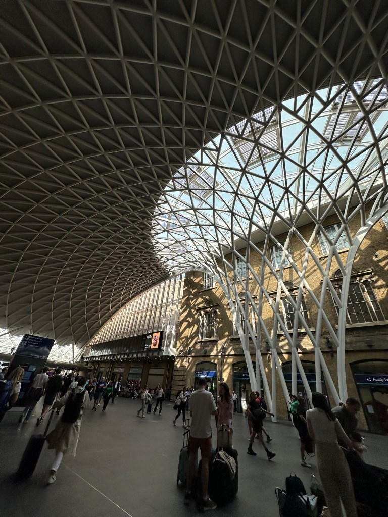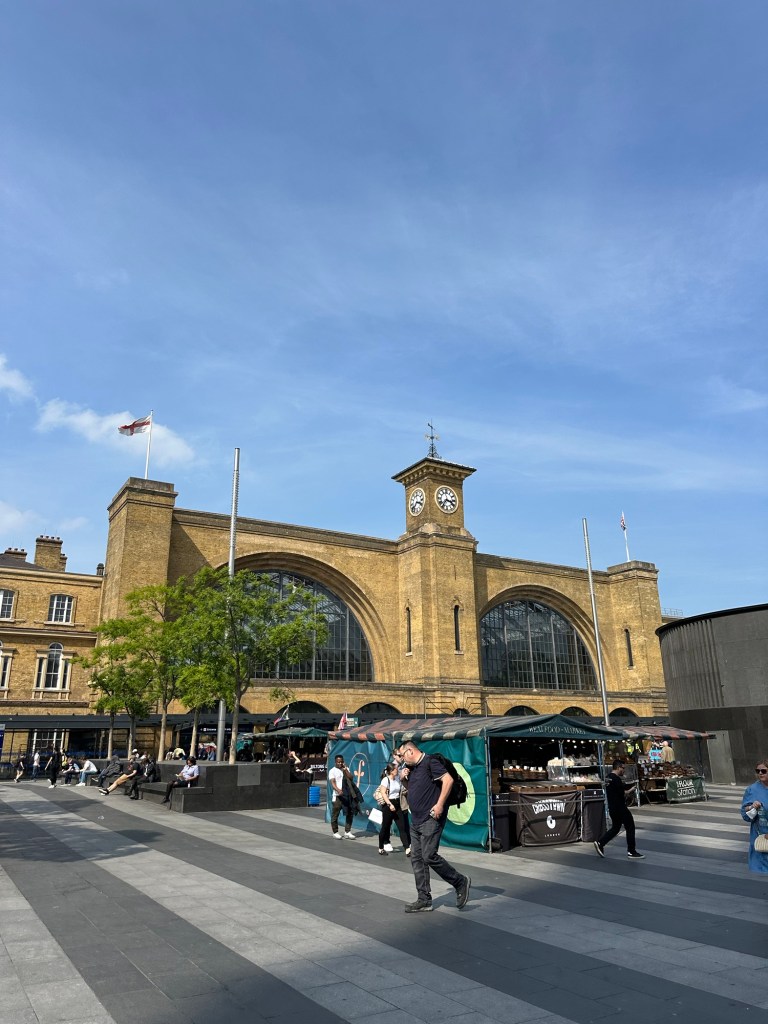 Famously mentioned in the Harry Potter books as platform 9 3/4 was the entrance to the train to Hogwarts. Wasn’t gonna wait in the crazy line for a photo so now I’ve got this lady in my camera roll LOL