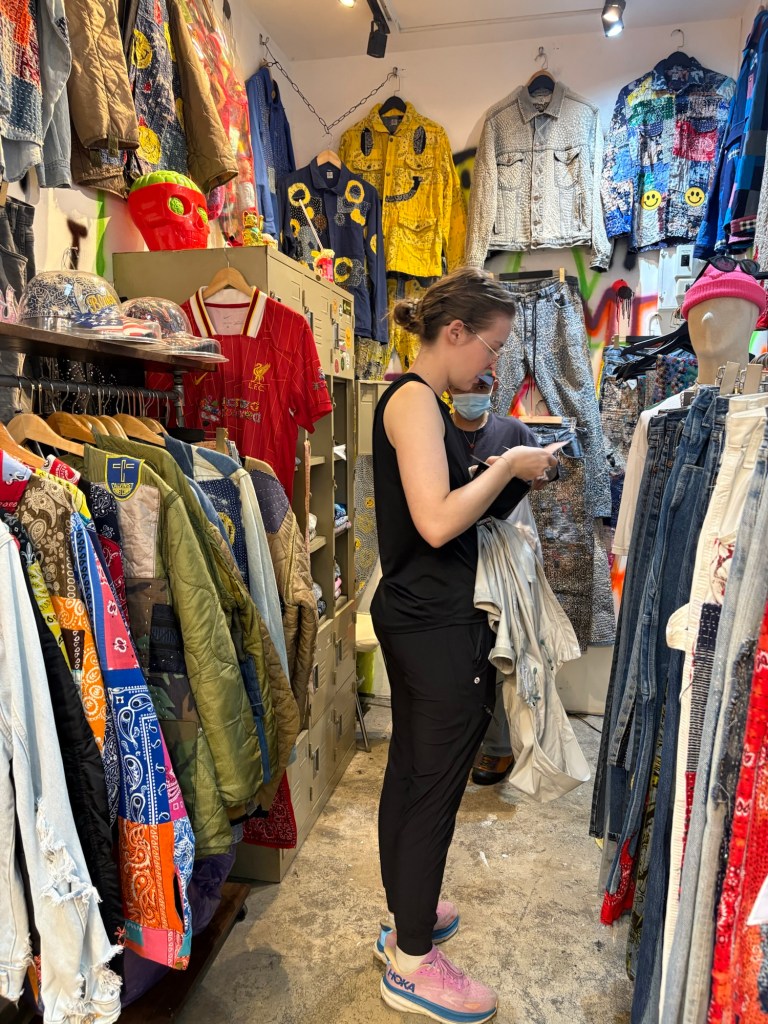 I really don’t go shopping on these kinds of trips but it was hard when the clothes are good quality and you can’t find them back home and are soooo cheap! This was me all happy I actually found stuff I liked! Like I got a jacket that would easily be $200 in New York, I got for $45. You just can’t beat that!