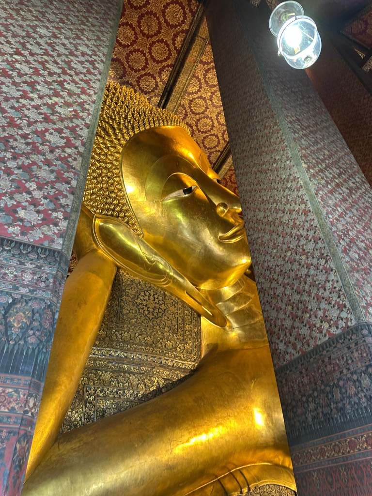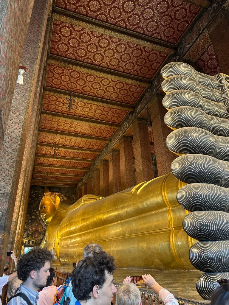 Wat Phra Chetuphon houses the largest reclining buggy’s at 46m / 150 feet long. I’ve never seen anything like it, it was huge!