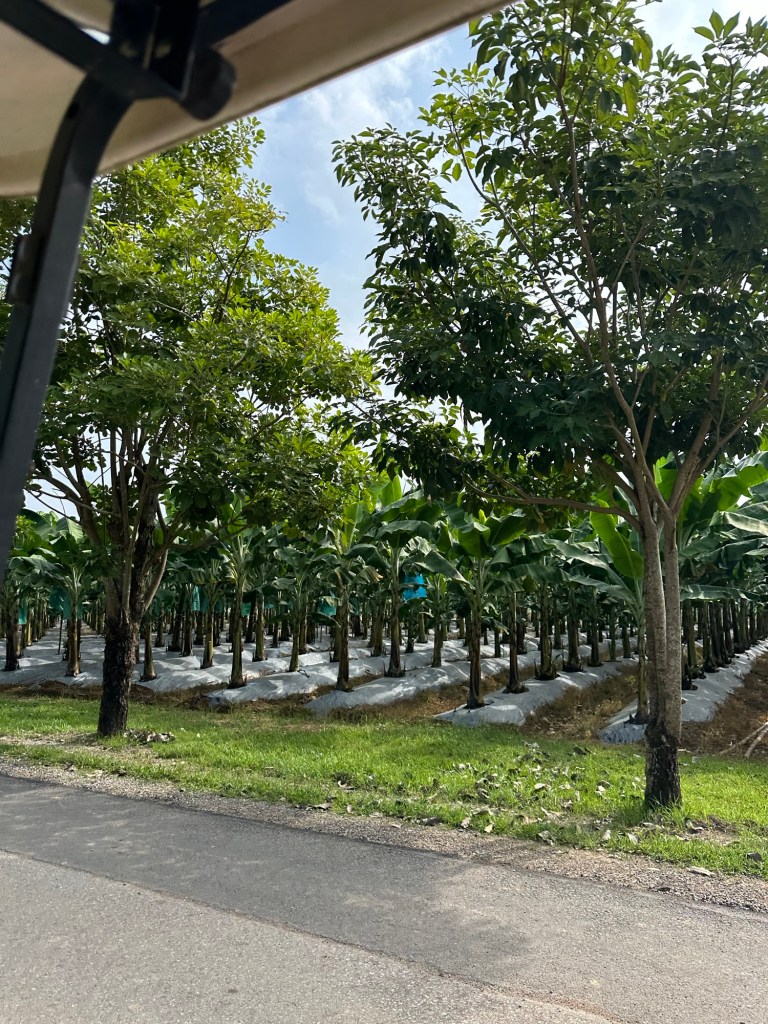 Singha is a really popular Thai beer and now they make other food and drink products. They own a bunch of property and grow different kind of produce, including tea. We opted for the option is rent a golf cart and ride throughout the grounds. This included a visit to βswan lakeβ, tea tasting, and a mini zoo. The views were just incredible!