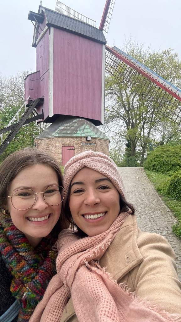 Once we had recovered a bit we went on a walk on the outskirts of town. Brugges used to be surrounded by a moat and city wall. Now, there is only one gate still standing and only parts of the moat. This walk along the moat also had 4 Dutch windmills that were so cute!