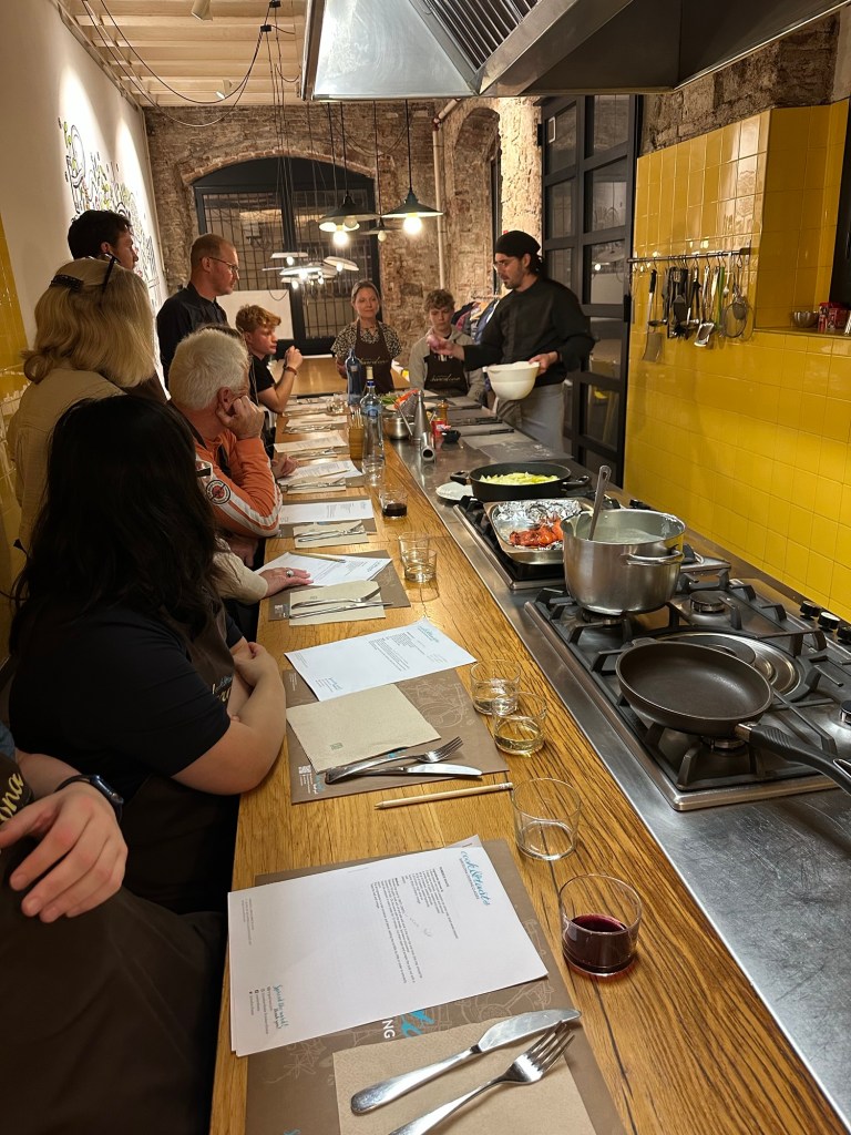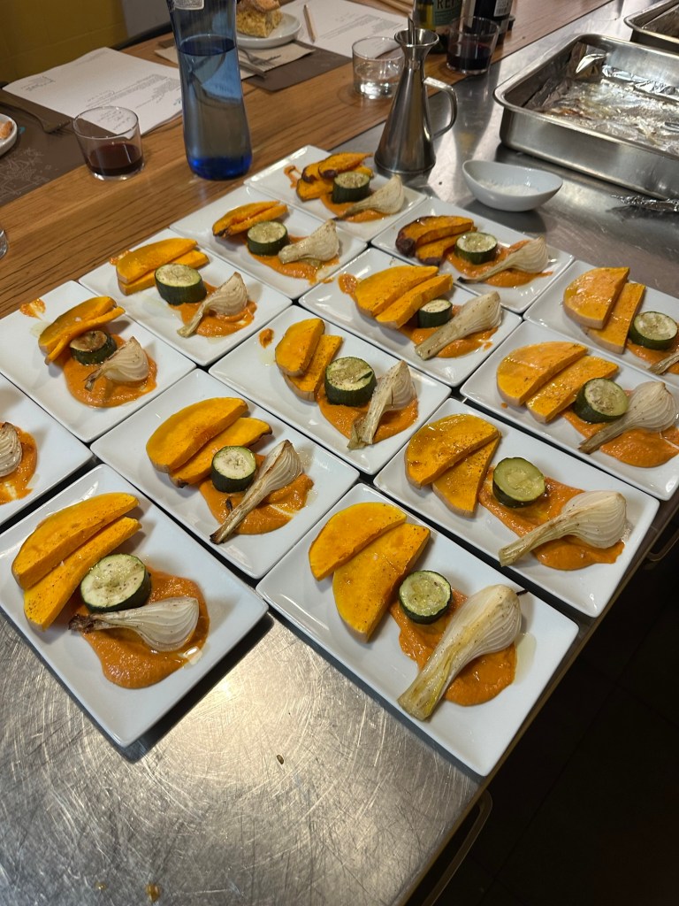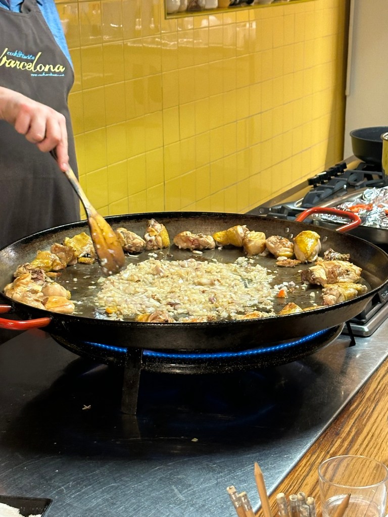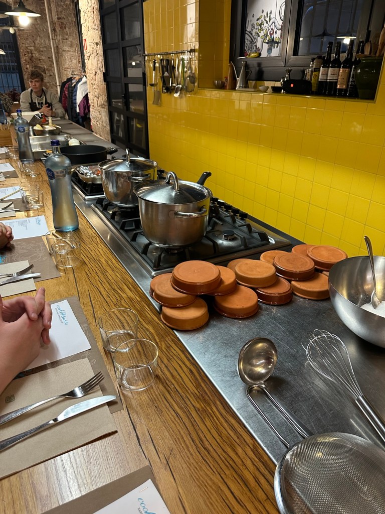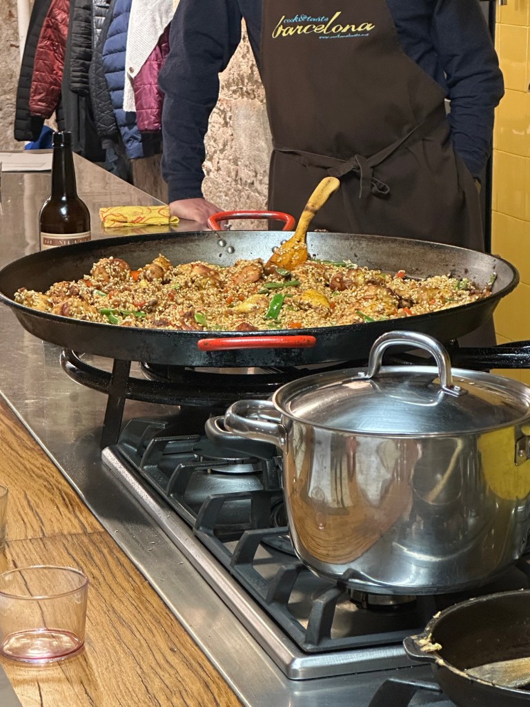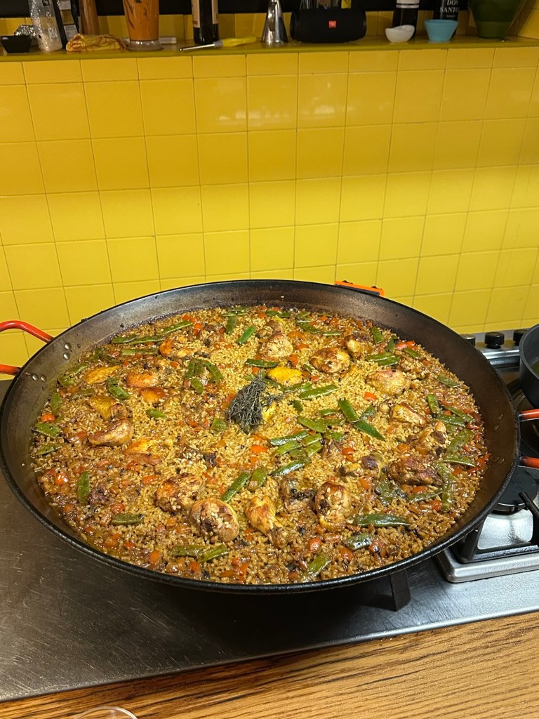 - Paella Valencian Style : Everyone knows paella… it’s a rice/risotto dish with some kind of meet, this one being chicken, with peppers, tomatoes, green beans, onion, chicken stock, saffron, paprika. Got to be honest… I have maybe only had paella 2-3 times in my life, including this. And I maybe think paella just isn’t for me. It was definitely cool to learn to make it, as it requires certain techniques and a special paella pan, but I don’t think I would order this at a restaurant. 5/10 for me personally