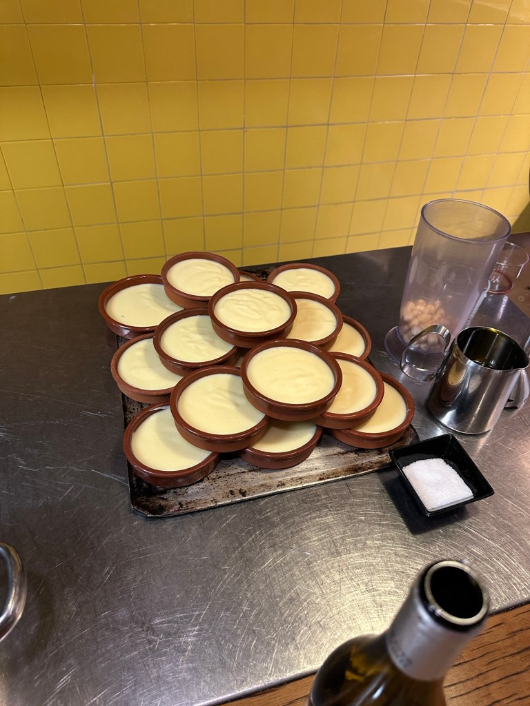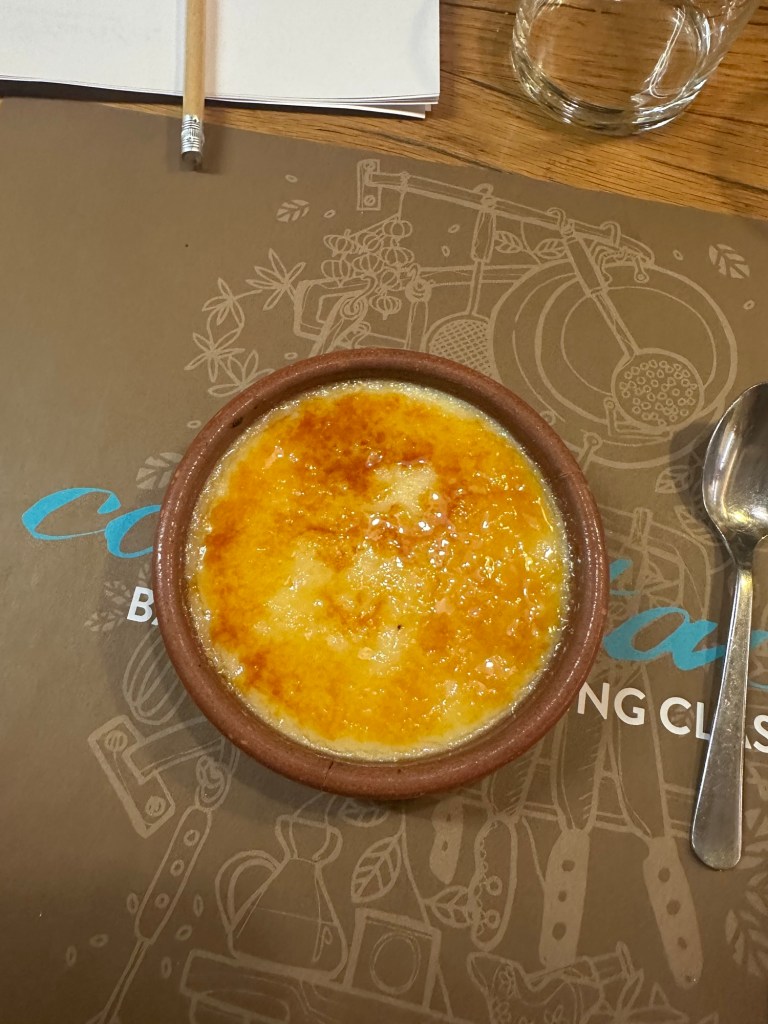 - Crema Catalana : lemon and cinnamon custard (similar to creme brulee). Mixed eggs, sugar, lemon, cinnamon with a melted sugar glaze. 7/10