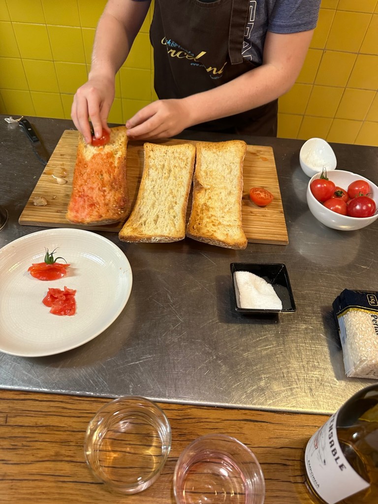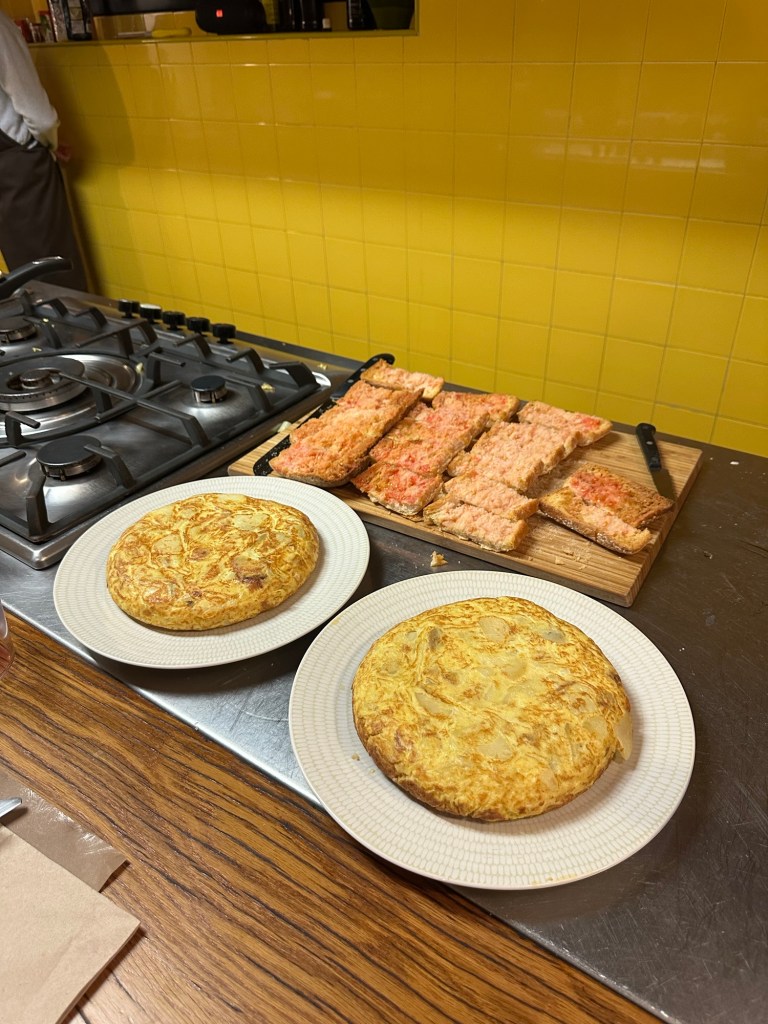 - Tortilla de Patatas con Pan con Tomates : potato omelet with tomato bread. Wow, both were so good, I’m especially a fan of the tomato bread. At first I thought this was going to be tomatoes cooked into the bread (new sourdough idea?!) but instead, it’s toasted bread smeared with garlic, tomato, and olive oil. I would make both of these for sure. Tortilla de Patatas 8/10 and Pan con Tomates 10/10