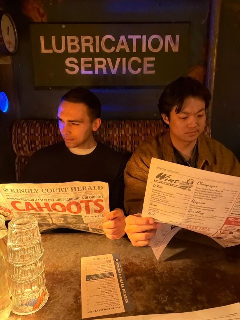 Need to get off our feet for a bit… ended up at Cahoots Underground, a super cute old timey speak easy type bar.