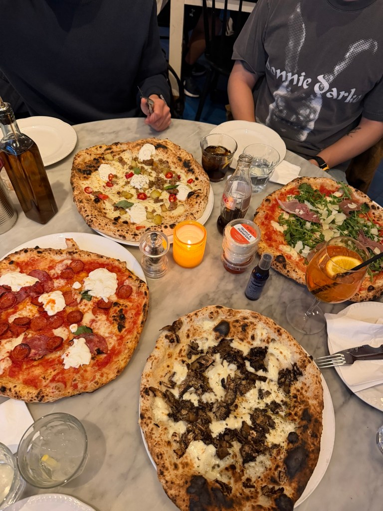 Finally rejoined with Mary and Sharon for dinner at a Rudy’s pizza. (Rocco was off to Phantom of the Opera with his fam so -1 for the evening.. )