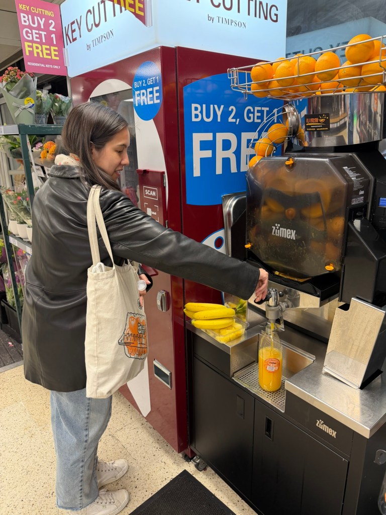 Mary’s mission for the night was 1. To carb load and 2. Stock up on fruit for snacks! Including fresh squeezed orange juice at Tesco which she was pumped about😝